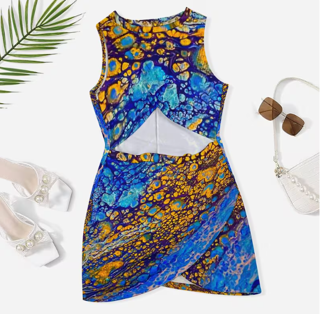 Wear The Drip: Navel-Baring Cross-Fit Hip Skirt (Paint Pour Pattern 2)